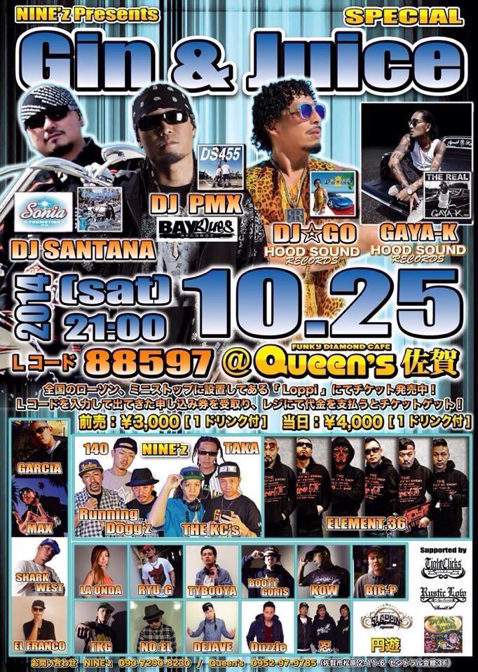 本日10月25日にQueen’s佐賀で開催される「Gin & Juice Special」にてSlappin’ Musicの物販を出します。